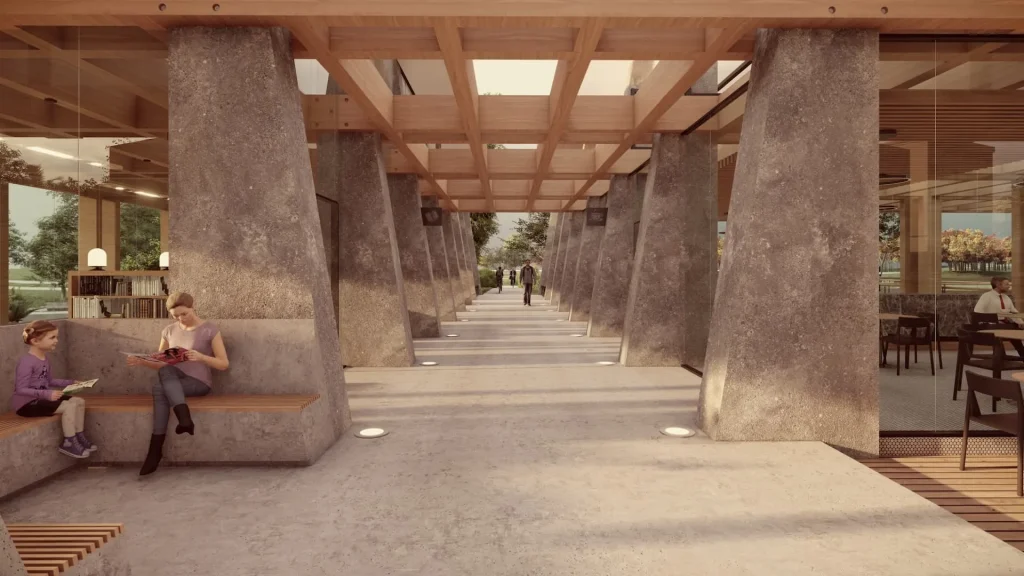 La volumetría del proyecto amplía el cruce norte-sur al tiempo que preserva el uso original del «rebalse». Integra varias dimensiones, como la cultura, el deporte, la educación y la gastronomía, cada una con su propio desarrollo, todas unificadas bajo un mismo lenguaje.