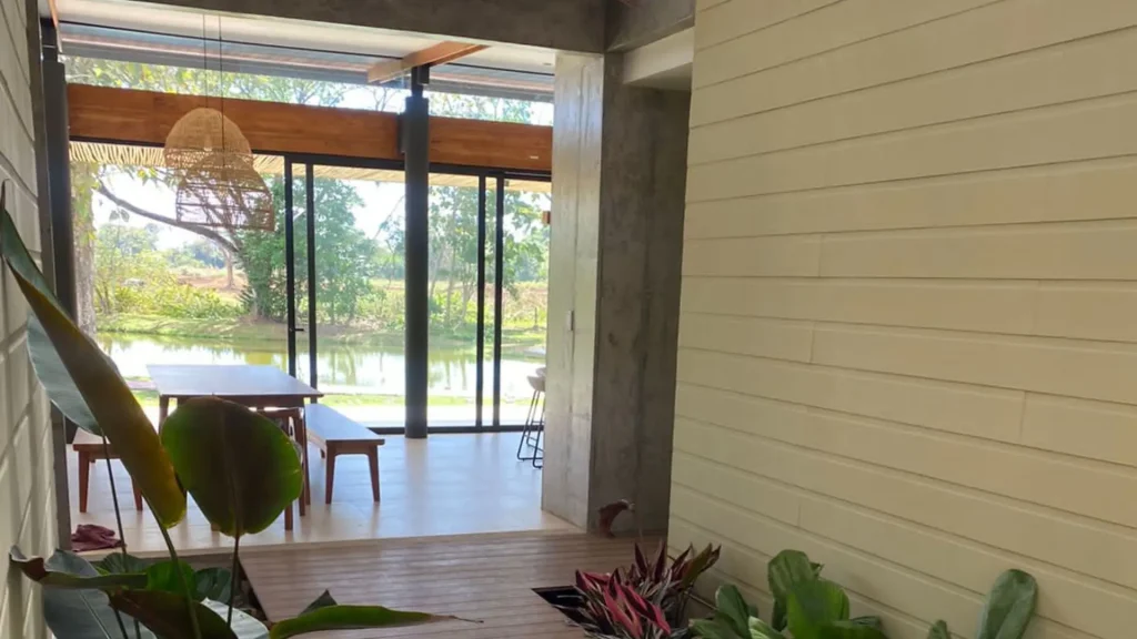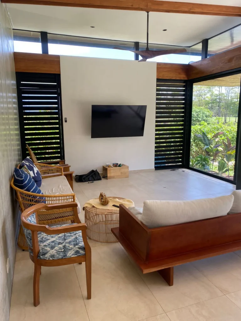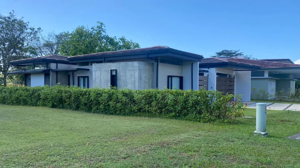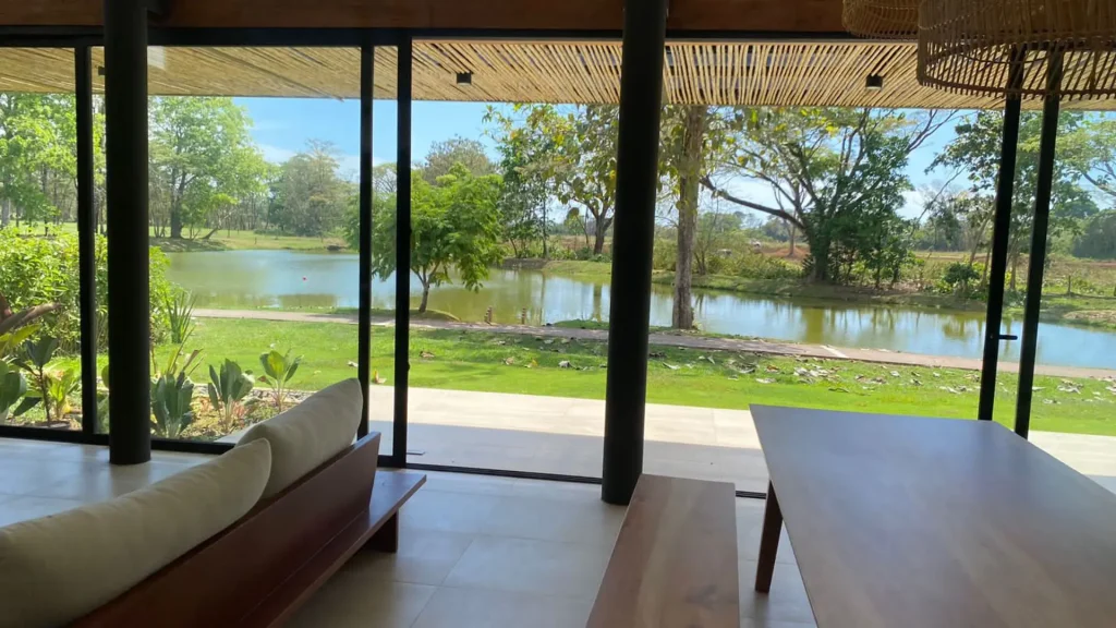 Esta casa es un verdadero homenaje a la materialidad de las encantadoras residencias del trópico limonense de nuestro país. Con una interpretación contemporánea, se ha creado un espacio único y cautivador. Al atravesar un pasaje cubierto rodeado de vegetación, las habitaciones de este proyecto se conectan a la perfección, guiándonos desde la entrada principal hasta el área social. Desde aquí, se revela una vista panorámica de un sereno lago cercano, que proporciona un entorno idílico para disfrutar y relajarse.