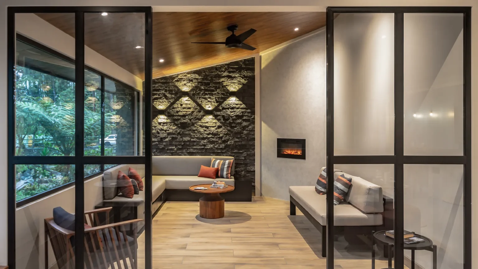 The furniture selection plays a crucial role, providing an environment conducive to relaxation and contemplation without overshadowing the project's essence. Each piece is thoughtfully chosen to complement and enhance the overall beauty of the space.