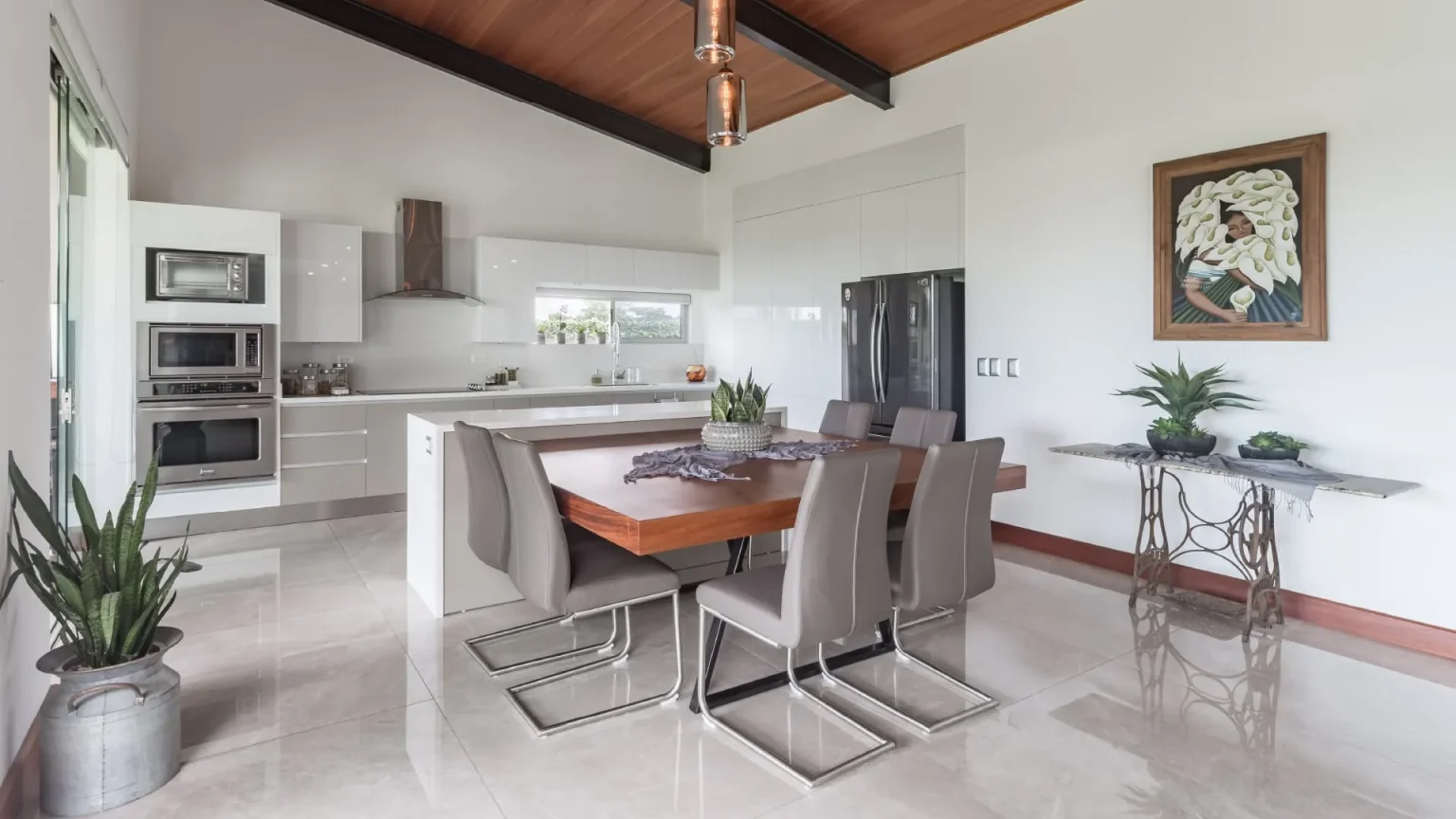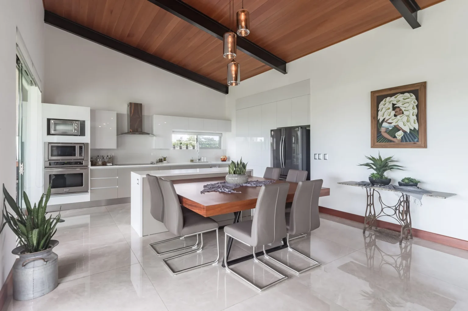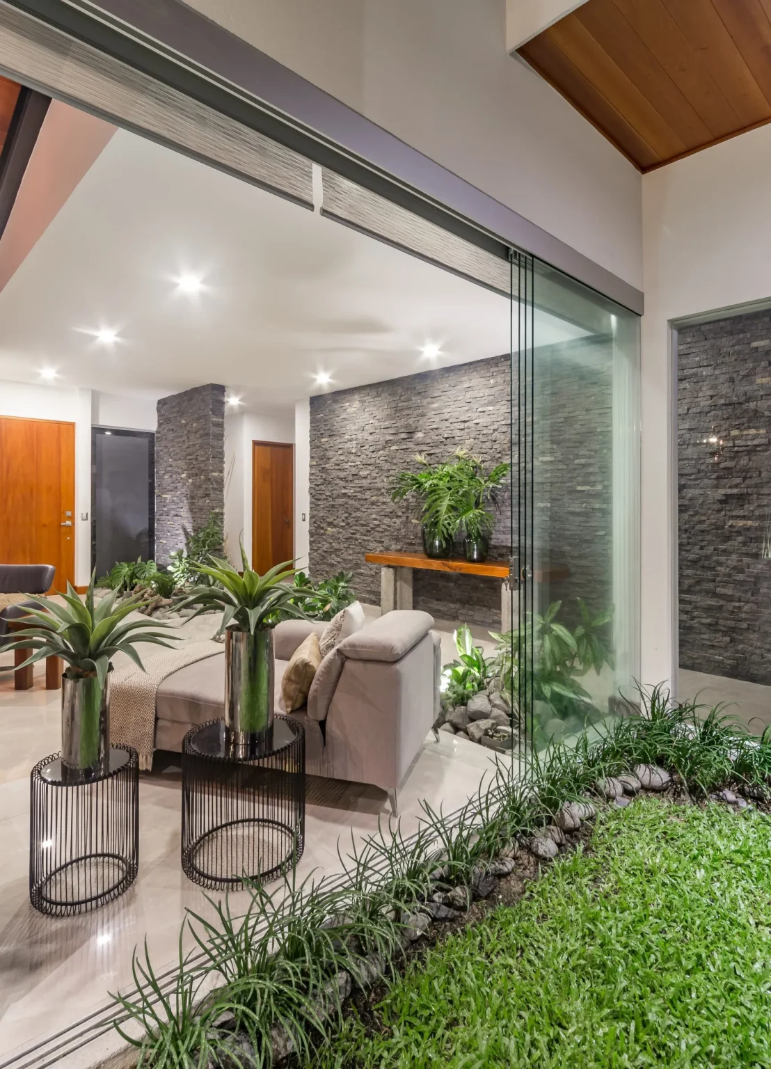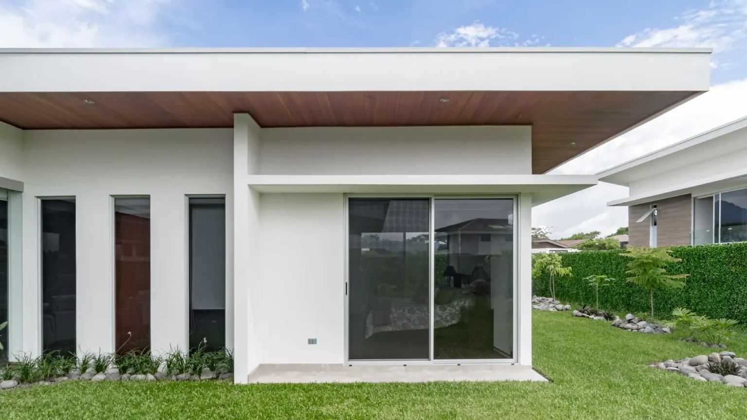 E-V2, developed by BG Desarrollos Inmobiliarios, is a home in Alajuela that underwent significant changes to meet the evolving needs of its owners. This residence optimizes social space, seamlessly integrating the kitchen, dining area, living room, terrace, and exterior green zone while maintaining flexibility in each area. Privacy has been carefully addressed in relevant spaces.