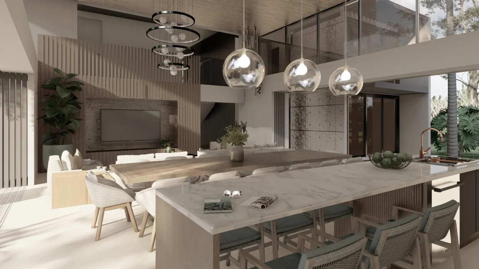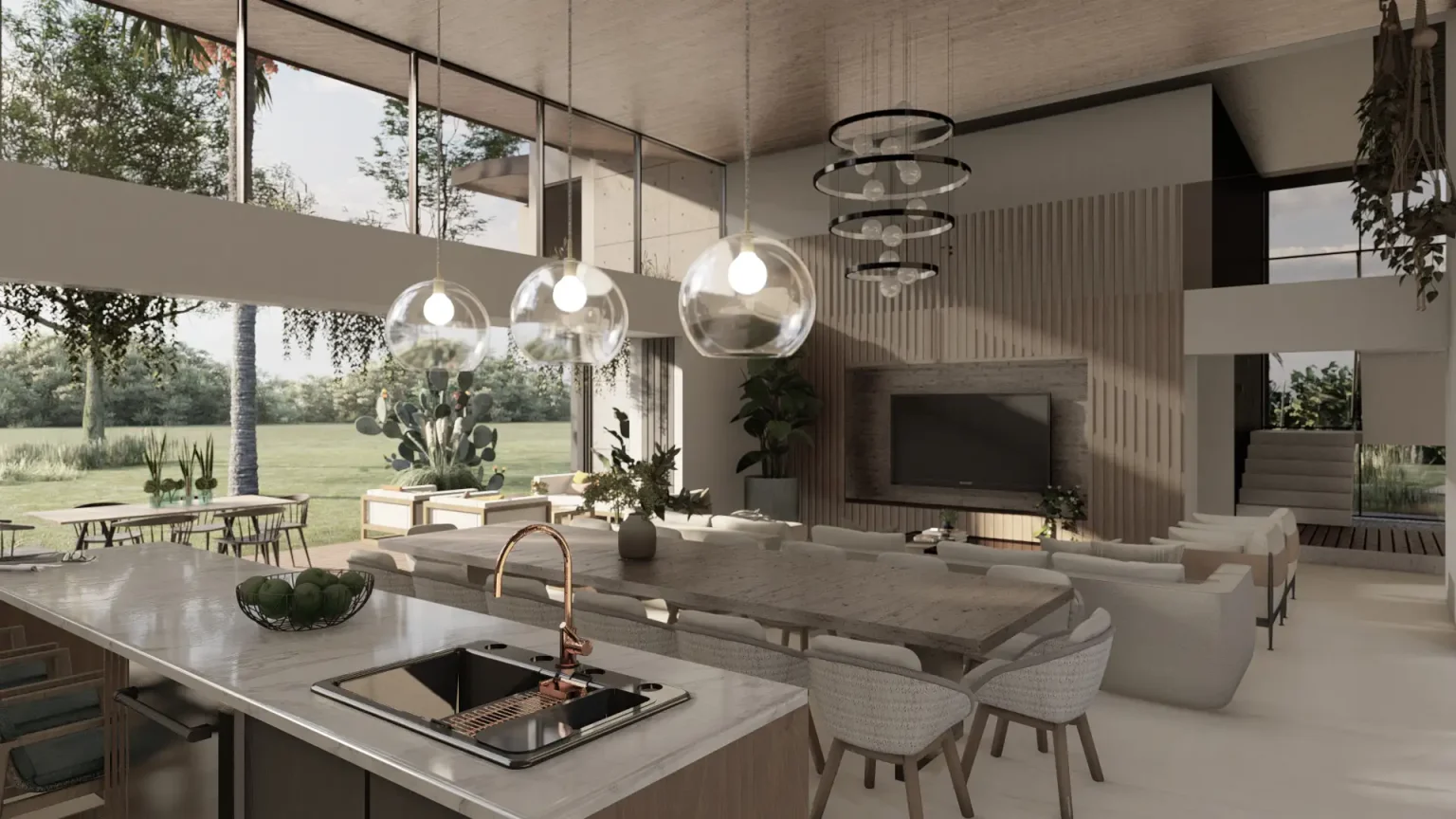 This residential project proposes a redesign of a house in Santa Cruz, Guanacaste, tailored to the specific needs of the owner, with a strong focus on biofilia and environmental respect. The design integrates natural elements throughout the home to enhance well-being and foster a deep connection with the surrounding landscape. Large windows and open spaces invite abundant natural light and fresh air, while the use of organic materials like wood and stone creates a harmonious atmosphere that reflects the beauty of the region. Greenery is incorporated into the design with indoor plants and strategically placed outdoor gardens, ensuring a continuous flow between the home and nature.